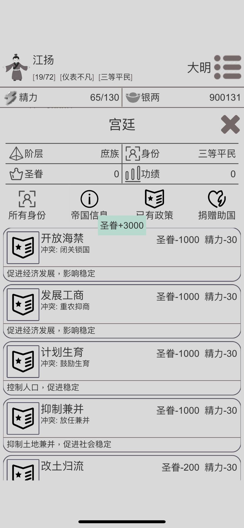 3⃣️有钱了!捐赠助国搞圣眷,然后第一时间执行关于觉醒的政策(普及教育)。