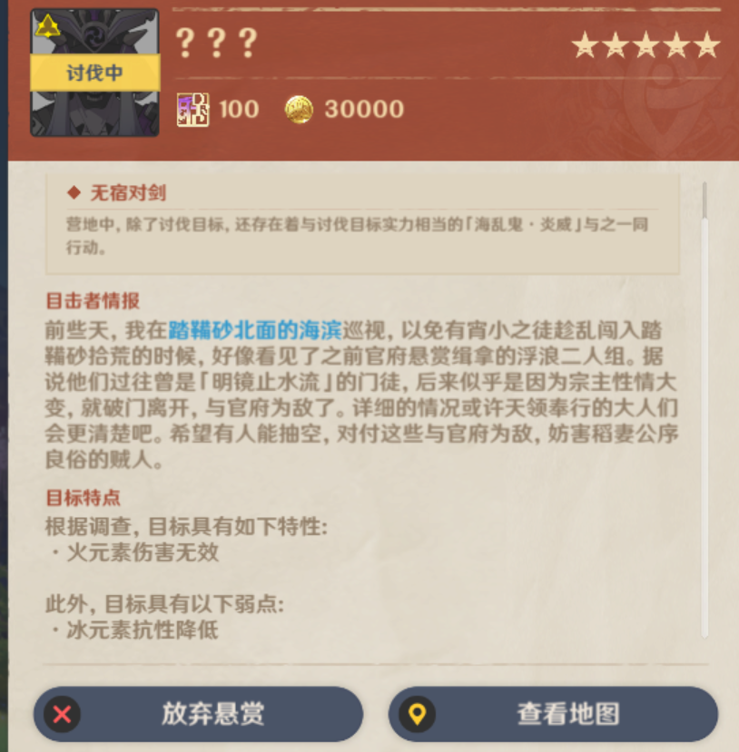 就是每周的声望悬赏,对吧,咱们点进去看一看的时候。就很突然,我已经肝了很多周,用的是猫莫温神永动队,然后发现,它给我提供的怪物属性降低和提高,大部分时候都不是冰属性提高。哇,好开森啊。我是圣遗物刷sha了吗,连这点都觉得原神很体贴。一般游戏策划不都会针对玩家队伍提高难度吗。大伙觉得怎么羊呢?