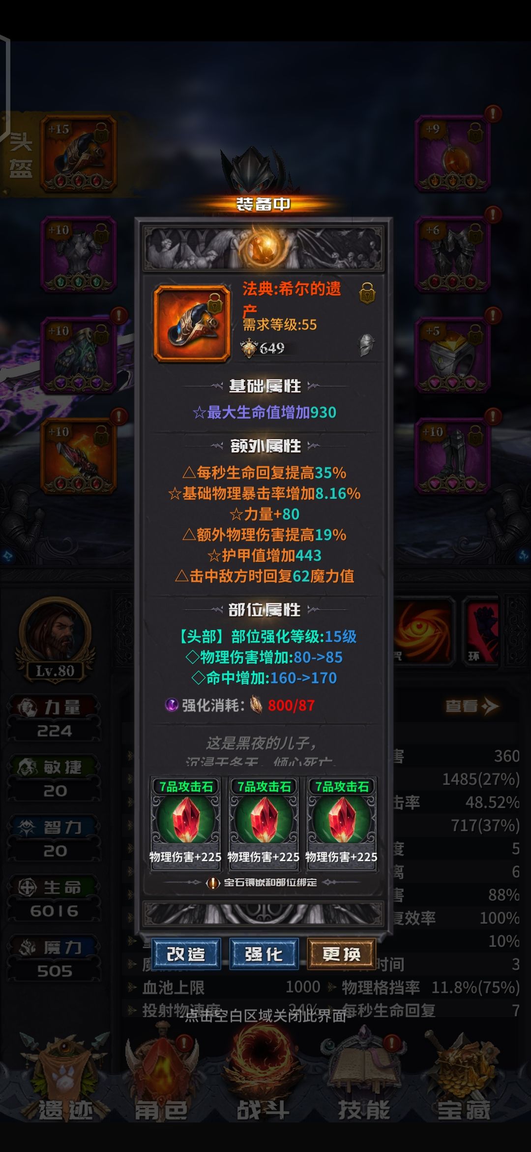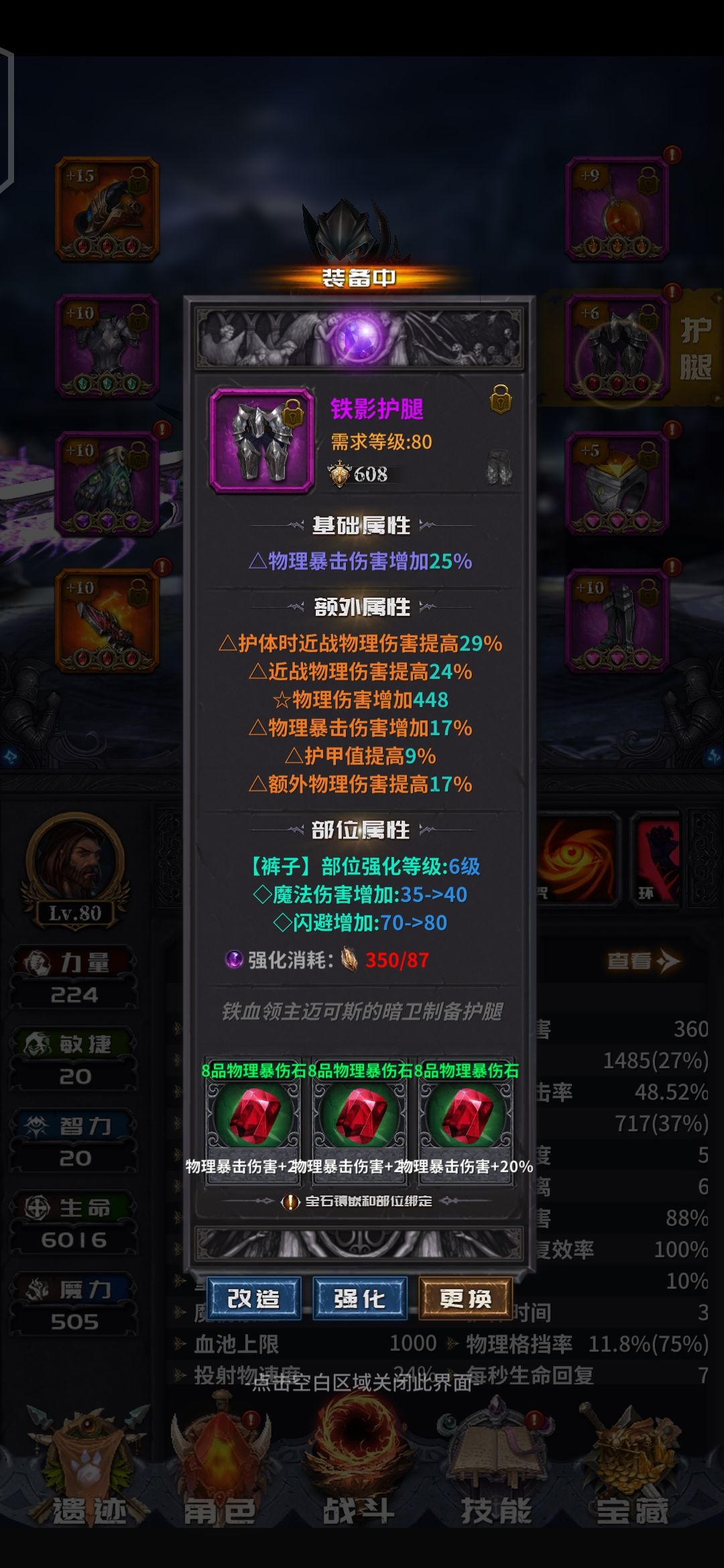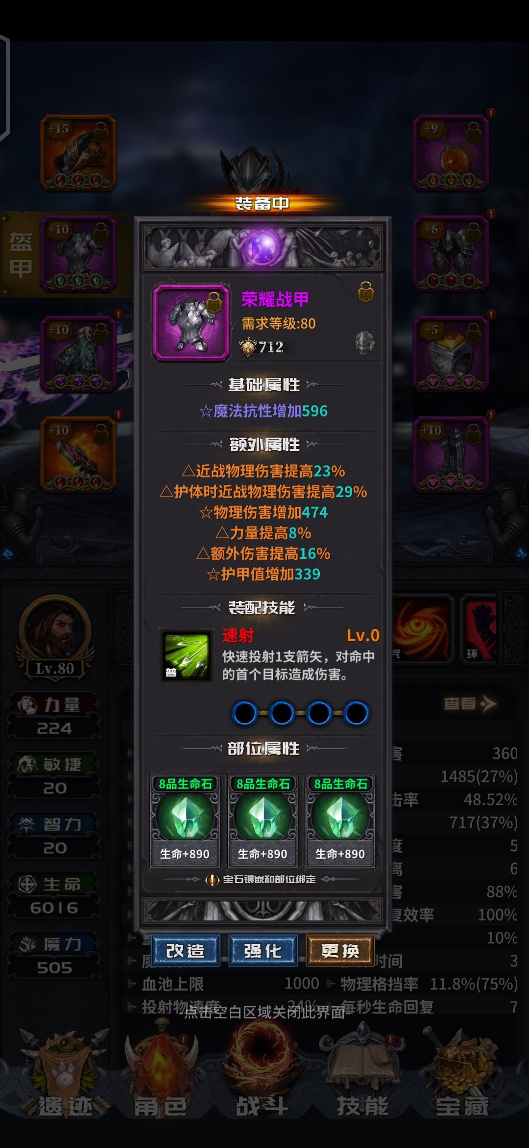 前面说过了,游戏的核心是词条。但是洗词条又是个看命的东西。所以,我们目标定为3到4条的T0增伤词条。剩下的两条看命,又要同时保证要有一条击中回血,一条击中回蓝。话不多说,直接上图。肝了两天材料洗的成果。