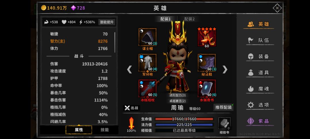 周瑜没套装加基础攻击,所以攻击偏低,魔魂杂体力比魔龙要好。如果马超保后排可以不杂盾,冰卫换冰龙。