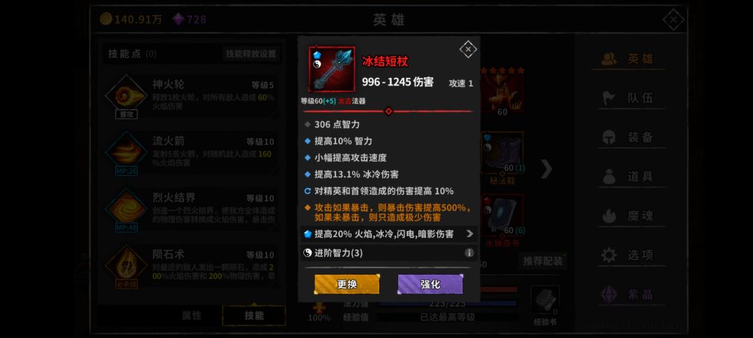 火周瑜理论上伤害会高一点,只是我三件4词条的冰系太古装,火系只有野生套,符文也合不出来,所以就用冰了。