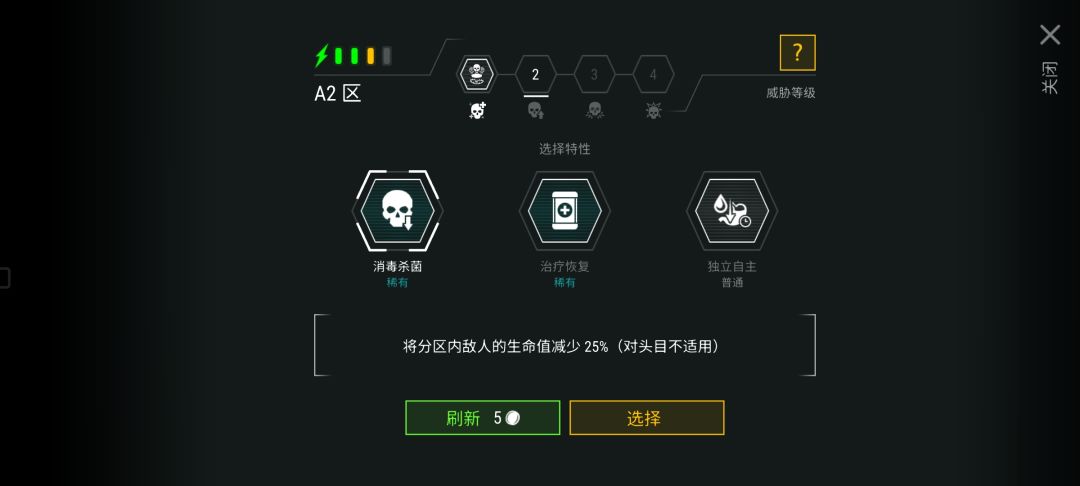 这里我选择了消毒杀菌来降低难度(蓝色是因为实验室声望等级提升获得的特性加强,原本效果为15%)