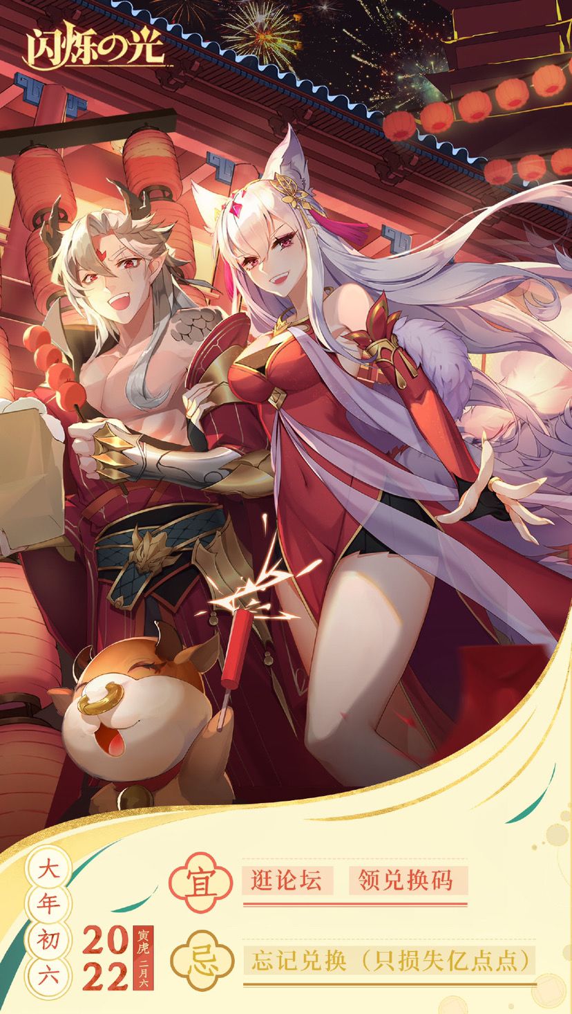 大年初六日历奉上!闪妹祝各位冒险者阖家辛福,十全十美。虎年奔腾开盛景,吉星高照福满堂~