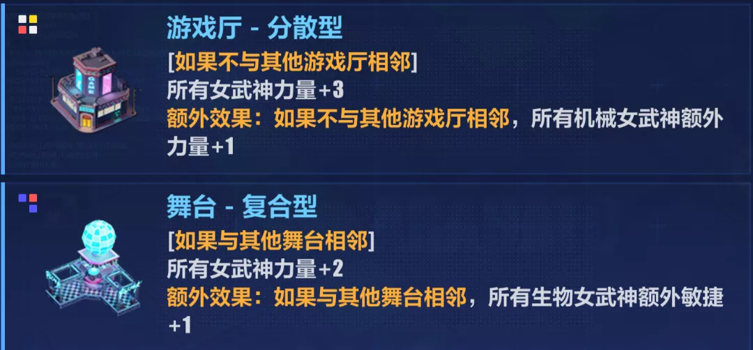 本关的核心建筑是吼姆雕像、舞台、游戏厅和中式庭院,舞台提供的敏捷可以提高生物女武神的移动速度,以吃到吼姆雕像的加成,而游戏厅能迅速提高全体女武神的力量(机械女武神和识宝提升更多),是启动箭头的关键(启动后才能路过吼姆雕像)。