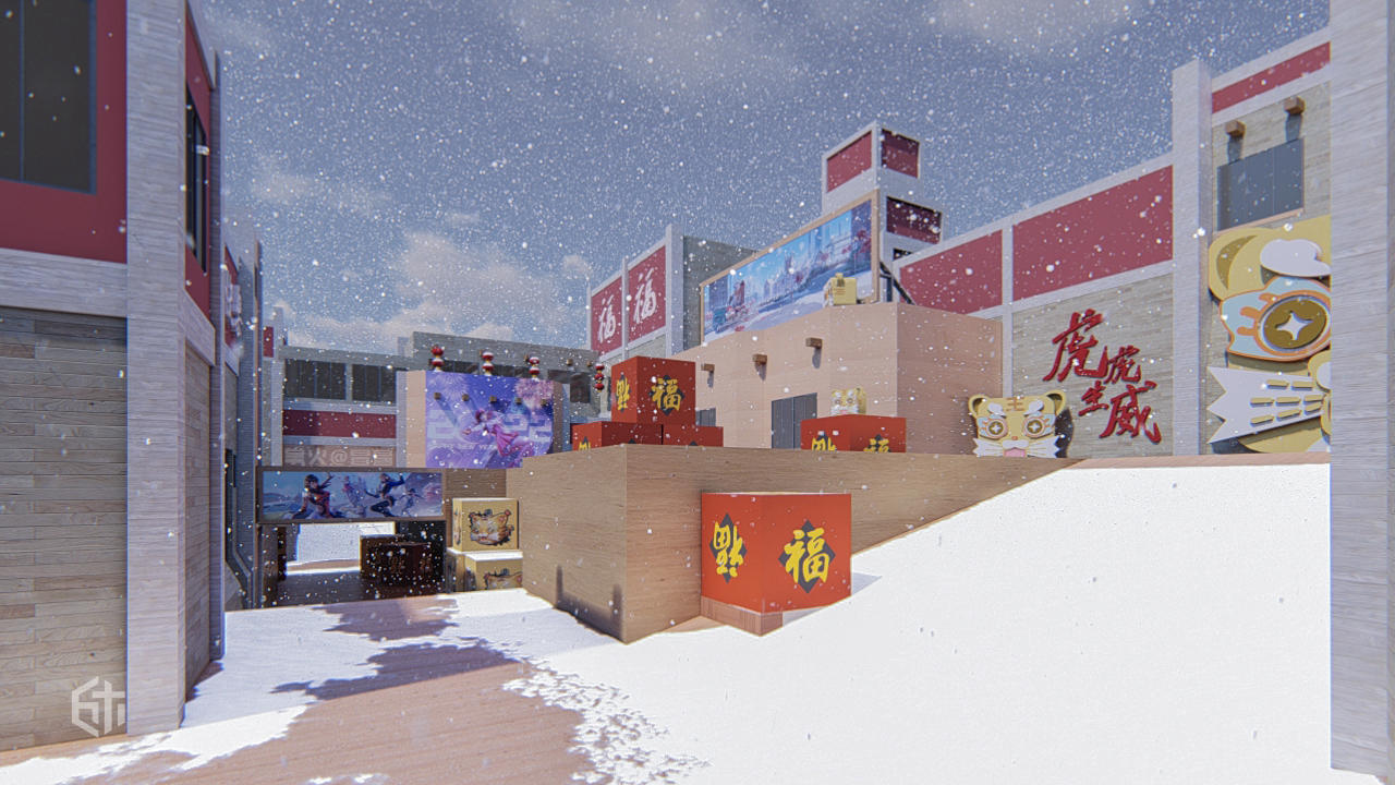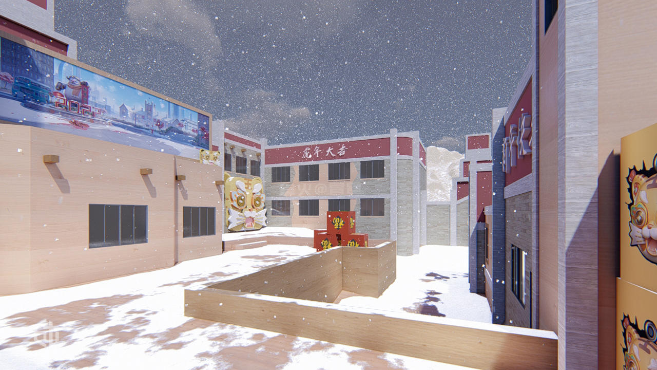 A包点必然是这一张地图的“打卡圣地”,当它飘起雪花的时候别有一番风味,随后是几张A包点的渲染图。