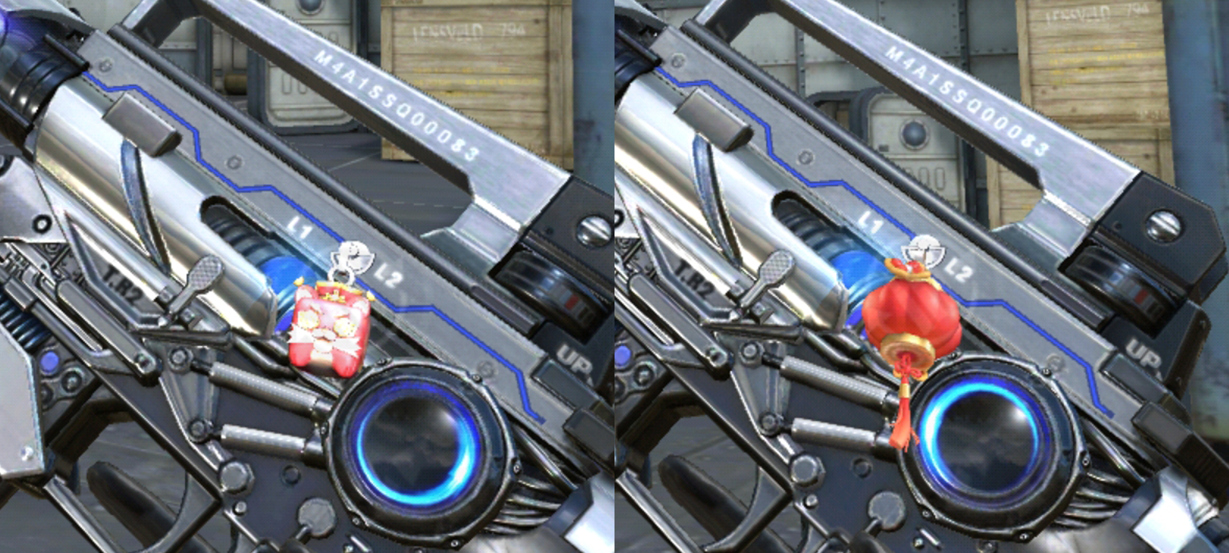 随后也是两款年味十足的挂饰,大红的颜色给人的感觉就是无比喜庆的,灯笼与春节福袋装饰在武器上,给武器营造出喜庆的氛围。快来获取这些福气道具,收下属于你的“火线福”吧。
