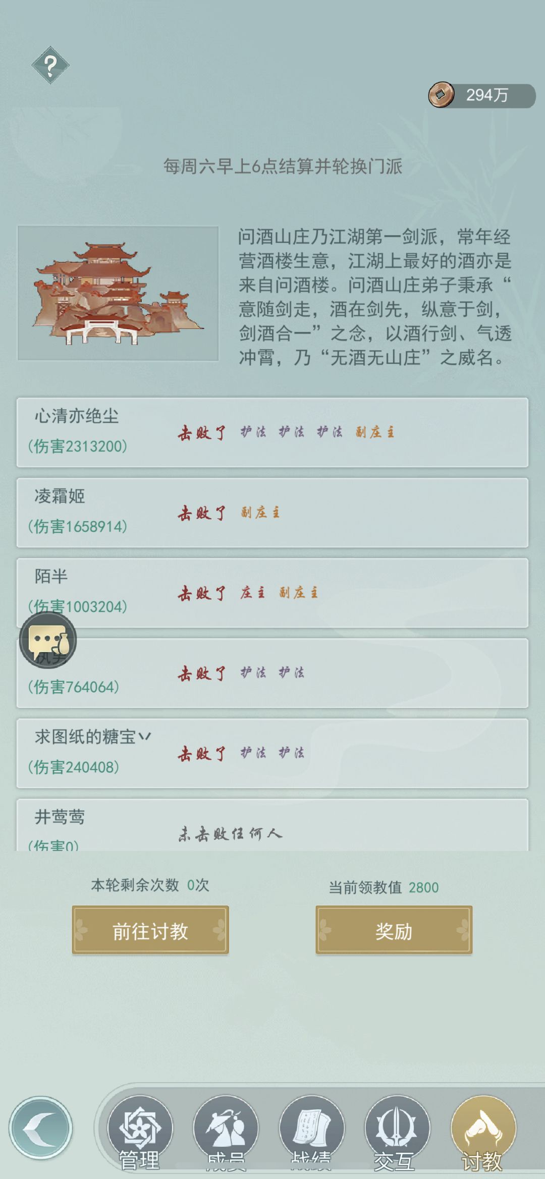 七贤招人咯~七贤id:854招收一名60级 长期玩 愿意打讨教的小伙伴 目前三问酒两惊涛一莫思欢迎各个门派小伙伴,你不弃我不弃,本周目前讨教值2800,上周讨教值7300+,就差了几个白色小怪人物ID:115235,欢迎来信