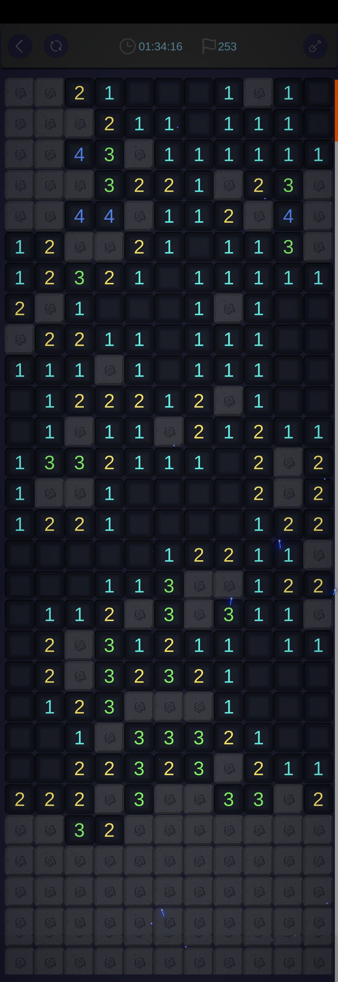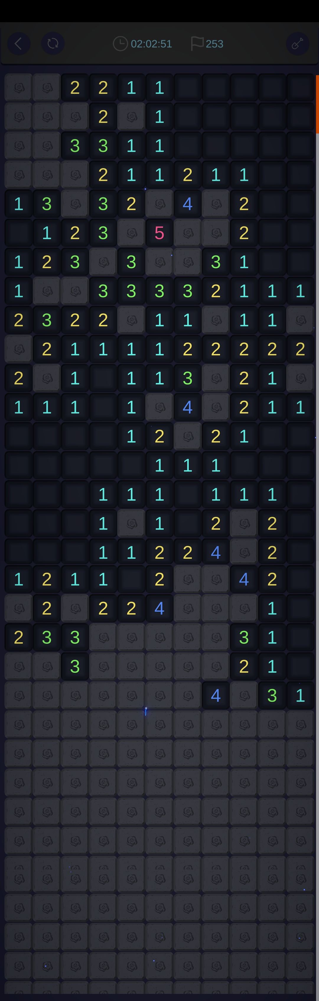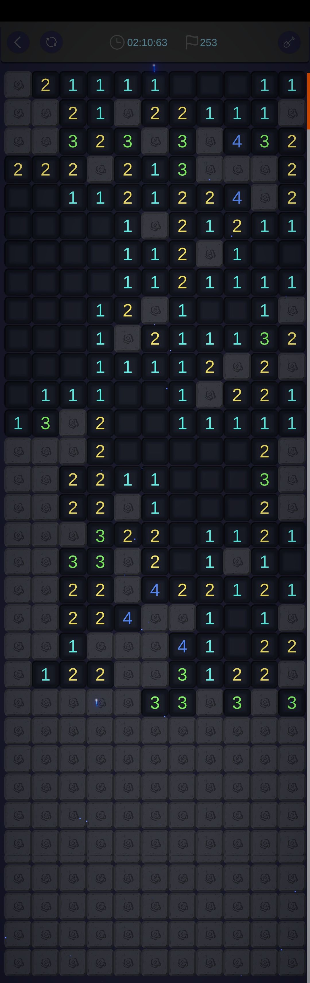 我觉得这款游戏作为扫雷游戏,猜雷的情况未免有些太多。毕竟因为手机的限制,左右宽度太窄,所以边缘墙体很长,导致更容易死局,只能靠猜。虽然有复活的选项,但对于那么多二选一、三选一作用不是很大。