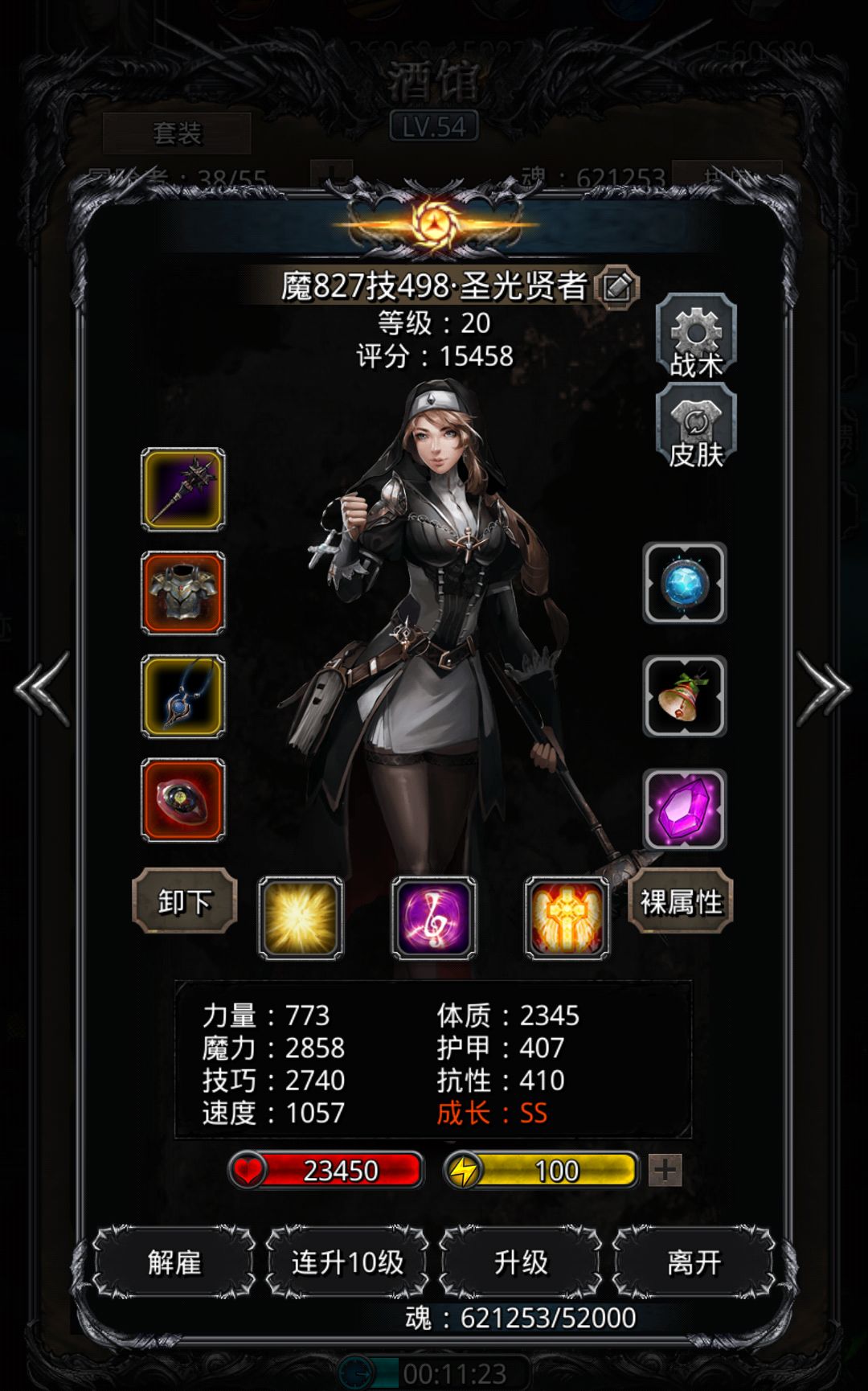 圣光技巧高的话,时间是够的。22分钟打完,boss1分钟提升470+的伤害,22分钟打传猎才1w7,完全还可以坚持7-8分钟