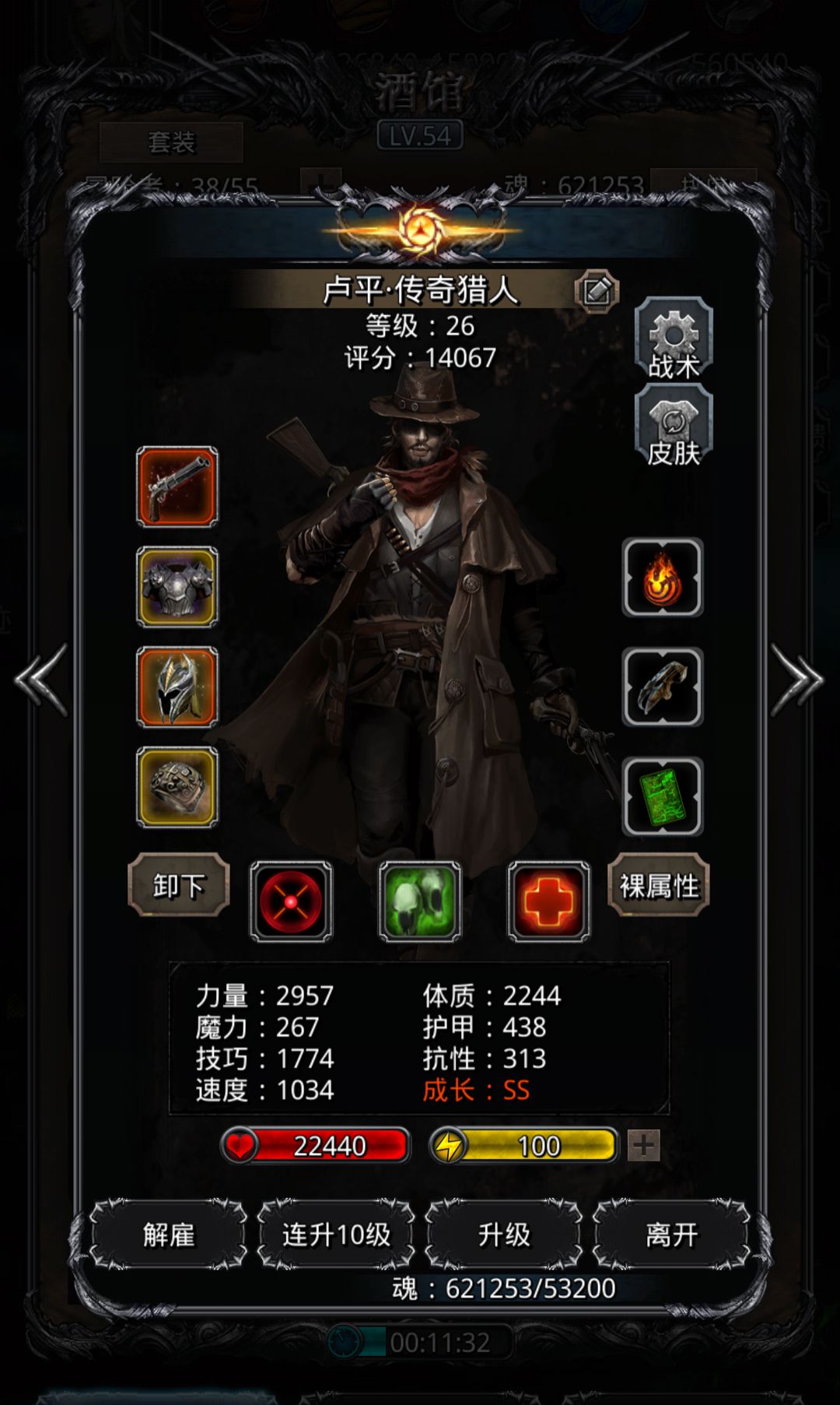 传猎牺牲点输出,提升点血量和护甲,有利于清小怪不暴毙。