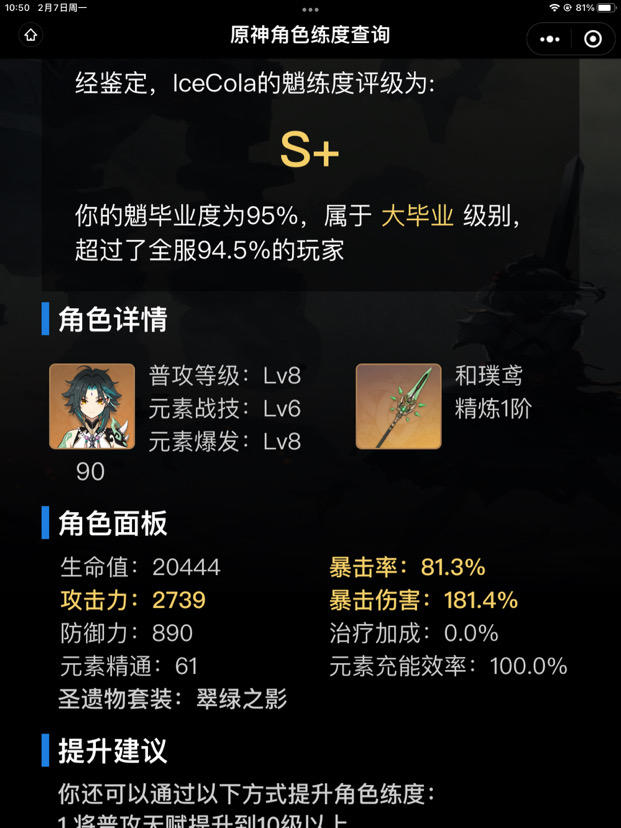 天赋是在没钱舍不得升,这个面板是攻击杯,主要实在刷不出风套风杯,先攻击杯凑二件套了,带风杯散件攻击2400,爆伤186