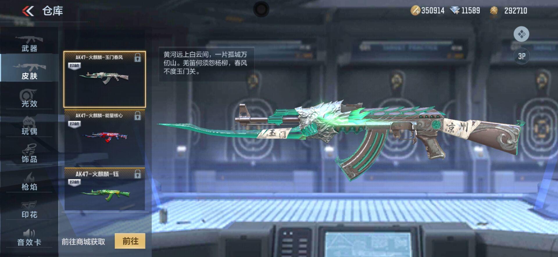 武器皮肤与武器音效卡也是上架了许多,最令人注目的是返场的“AK47-火麒麟-玉门春风”皮肤,皮肤独特飘渺的设计类型,深受玩家们的喜爱。钻石的获得也是极为的丰富,那么多实用的道具,你最喜欢哪一款呢?