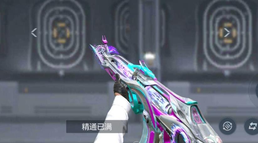 即使如此,我仍然觉得这款皮肤很对我的胃口。银色是武器的主要涂装,随后辅以高饱和度的紫红色与蓝绿色。这是一种奇妙的搭配,这种打破常规的配色给人的感觉是惊艳的。