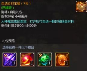 伤害达到3.6亿时可以获得3个自选珍材宝箱,里面的各类材料都是非常珍贵的哦~