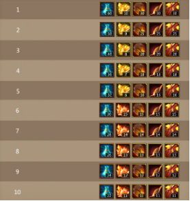 全区伤害最高的10个军团可获得非绑定奖励(奖励数量按名次递减),以下为不同排名的军团奖励物品的数量分布: