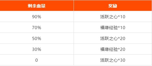 当世界首领剩余血量达到以下值时,全区玩家可获得丰厚在线奖励。