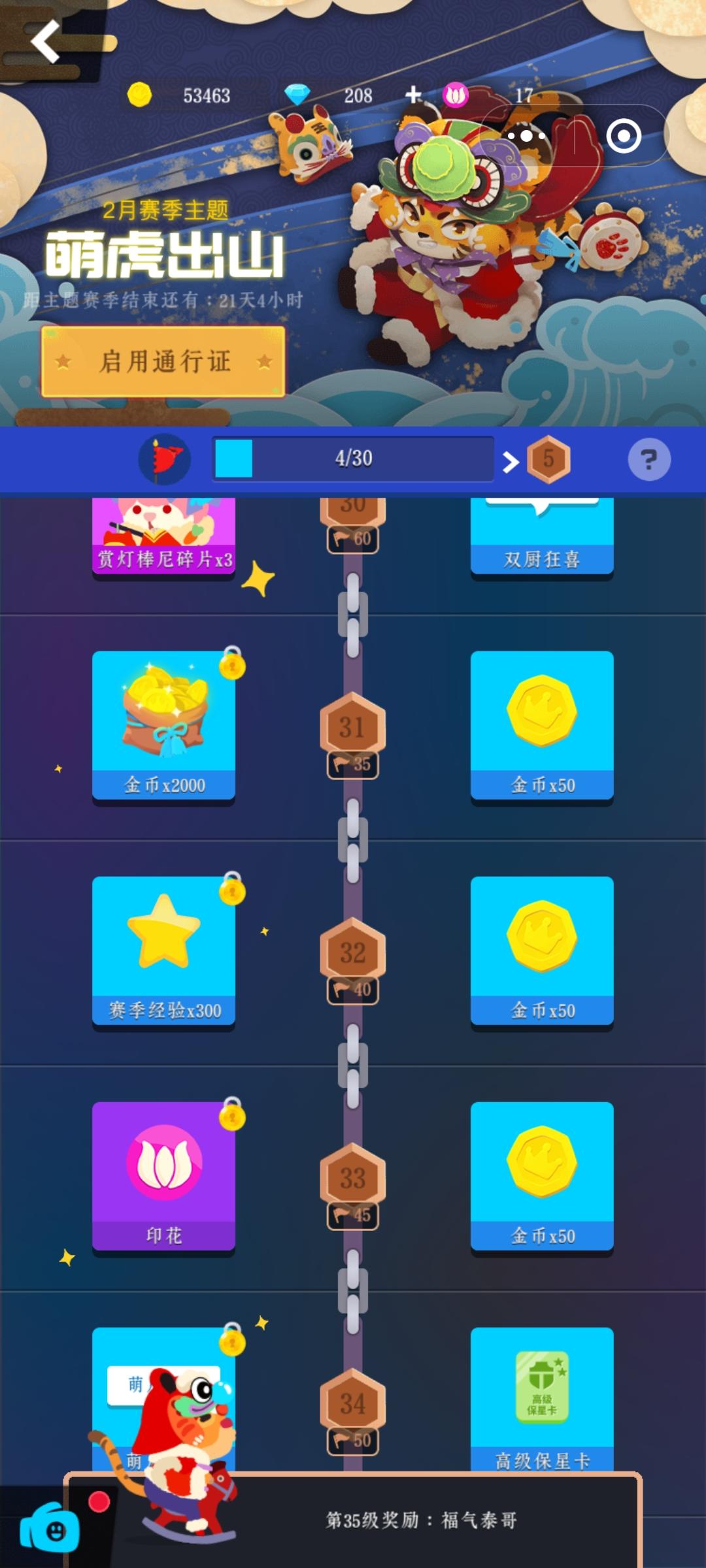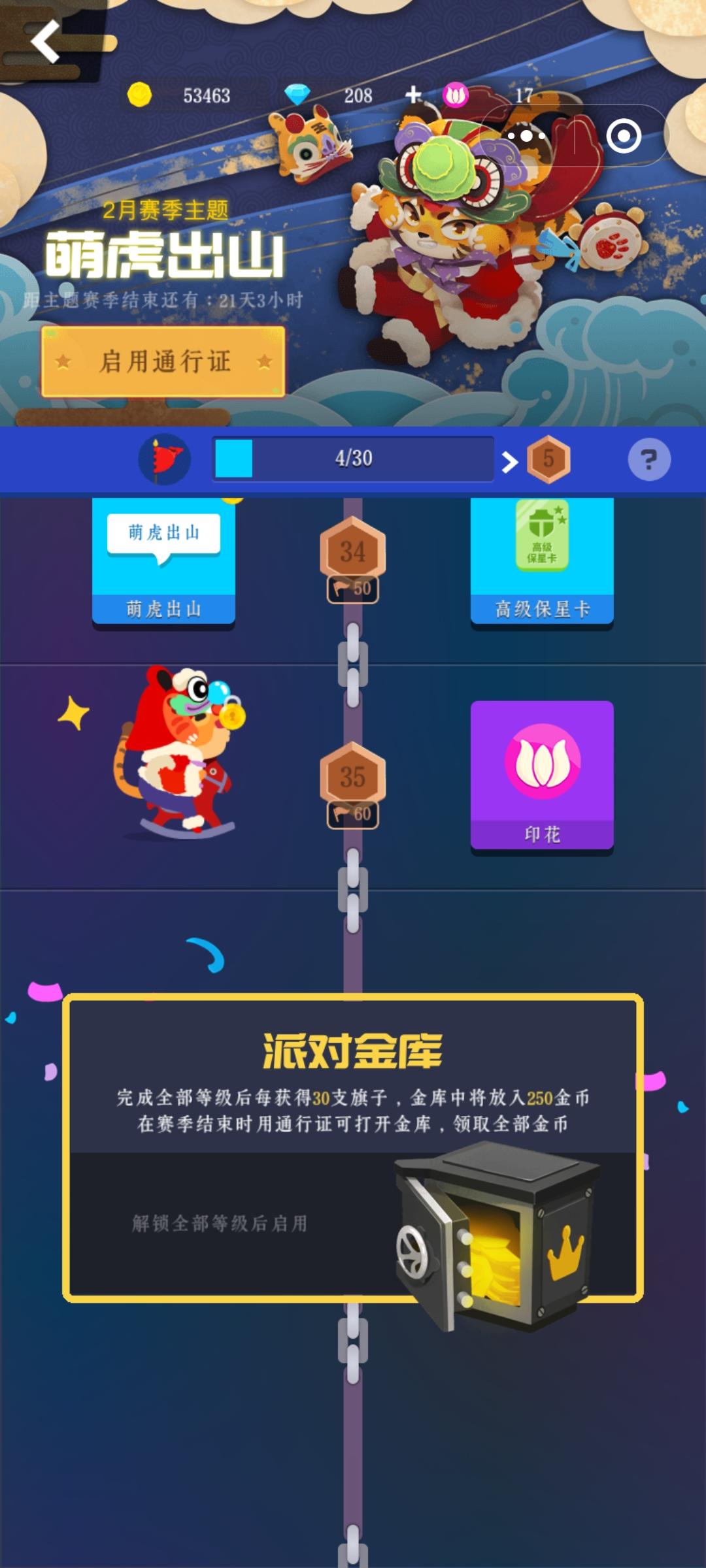 (注:1.阿啊的世界的时间与现实相同,派对制造的基本活动功能也大致相同。2.阿啊技术非常好。3.阿啊有百万金币无限广告。4.无视限时冲榜(像这次新春冲榜)。5.以后每次赛季金币、钻石、印花奖励都与下图奖励相同。6.不可买宝箱7.默认阿啊说的都是真话且会实现8.阿啊不看直播)