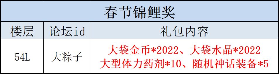 活动抽奖结果公布如下,首先是“春节锦鲤奖”