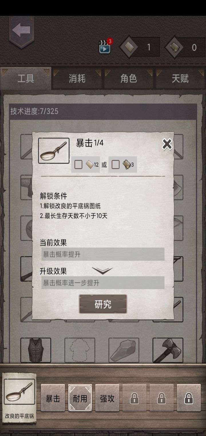 如图上,我的强攻虽没点满,但伤害己经提升到了51,每升一级伤害提升5,由此可得满级伤害61,最后得出了结论 改良的平底锅✘ 改良的竹枪✔ 满级后 改良的平底锅✘关爷的大刀✔