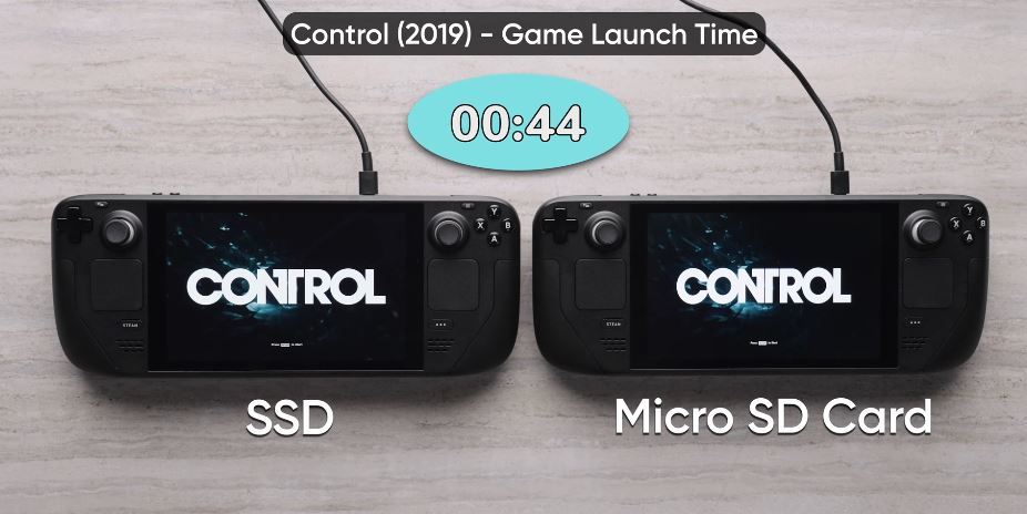 “加拿大白嫖王” Linus 和科技类视频频道 The Phawx 都在 Steam Deck 上进行了测试,发现在《控制》、《死亡细胞》以及《拳皇5》等游戏中,micro SD 和 SSD 的加载时间几乎相同。在一些情况下,micro SD 的加载时间只慢了 2 秒,而其他情况下两者的测试速度完全相同。