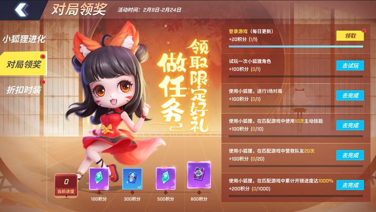 使用小狐狸完成任务,即可领取丰富的资源奖励!