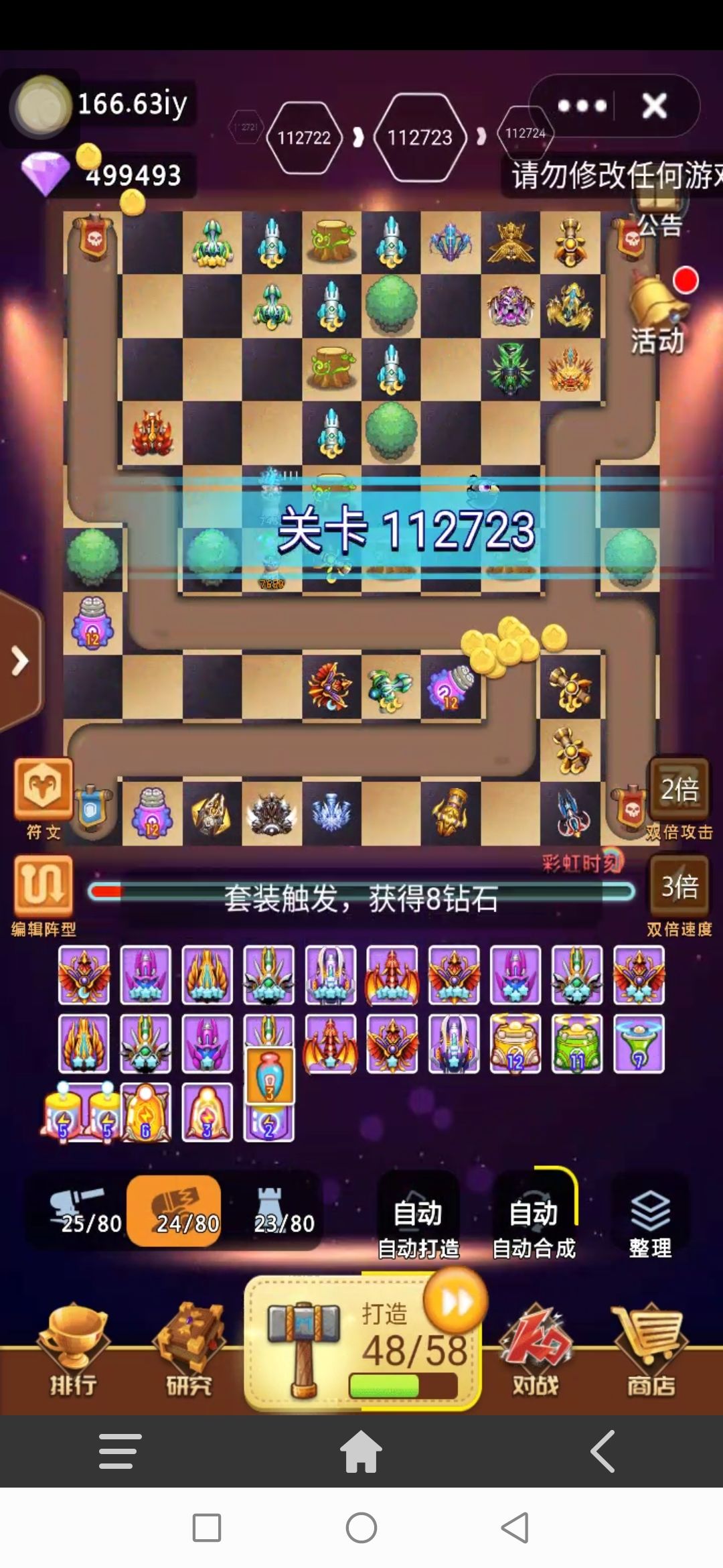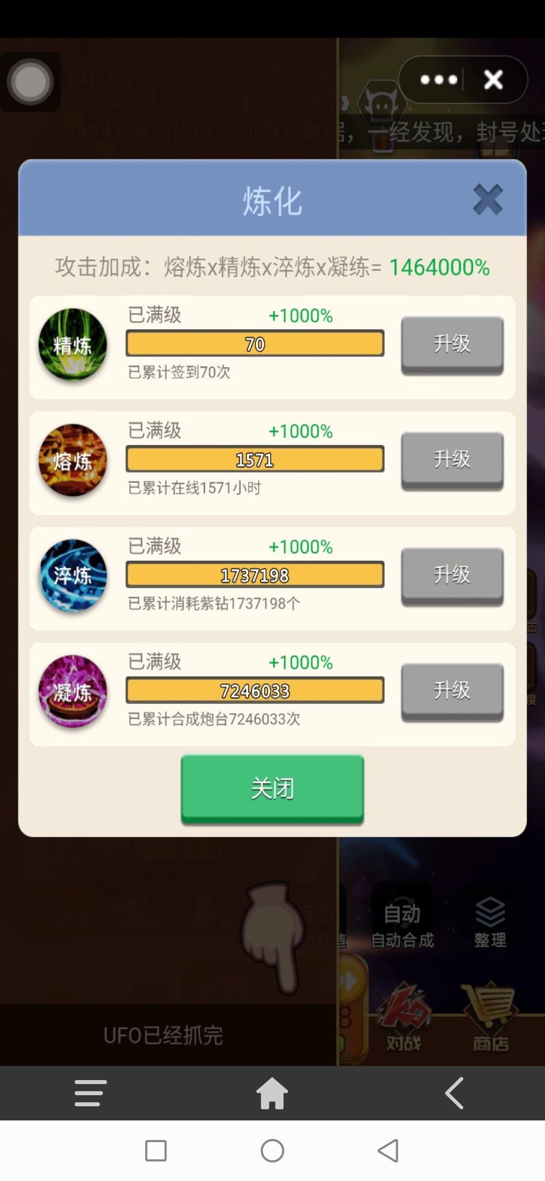 挂机闯关贼没意思,对战就是技能牛批能赢,技能一样拼运气看出什么炮台,玩了72天还是73天实在没意思了。69天橙炮12个。