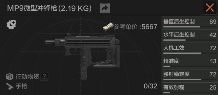 MP9是一把混在手枪中的冲锋枪,和G18C一样拥有全自动开火模式,虽然它的射速较G18C慢上一些,但它拥有更好的射击稳定性。MP9的可改造性比较差,只能加装瞄具,无法安装镭指这样的配件,大家可以根据个人喜好在它与G18C之间做选择。