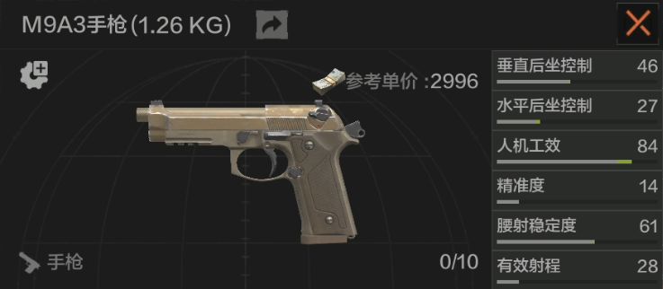 M9A3是使用9×19毫米子弹的手枪中性价比不错的一把。人机工效高、射速快,而且可以通过改枪加装瞄具、消音器,甚至还可以选择17发的大弹匣。大家在打潜入的时候,有时就会默认持有这把手枪,老皮个人还是比较喜欢的。