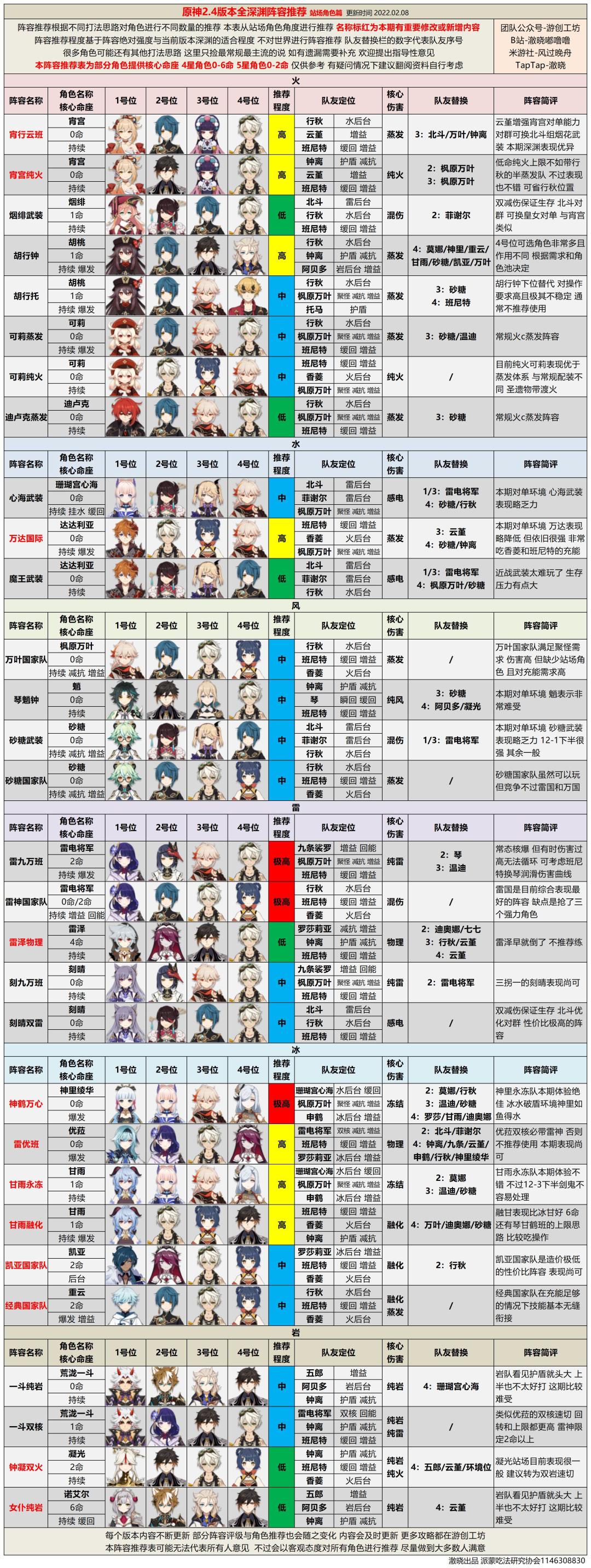 4.结合新深渊调整了部分阵容推荐程度,并更新了部分角色的队友推荐。
