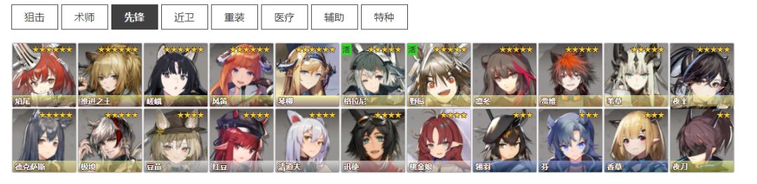 高台先锋(可以部署于高台,有召唤物,未来可期):豆苗(集回费,地面阻挡,工具人于一体,适合开荒),夜半