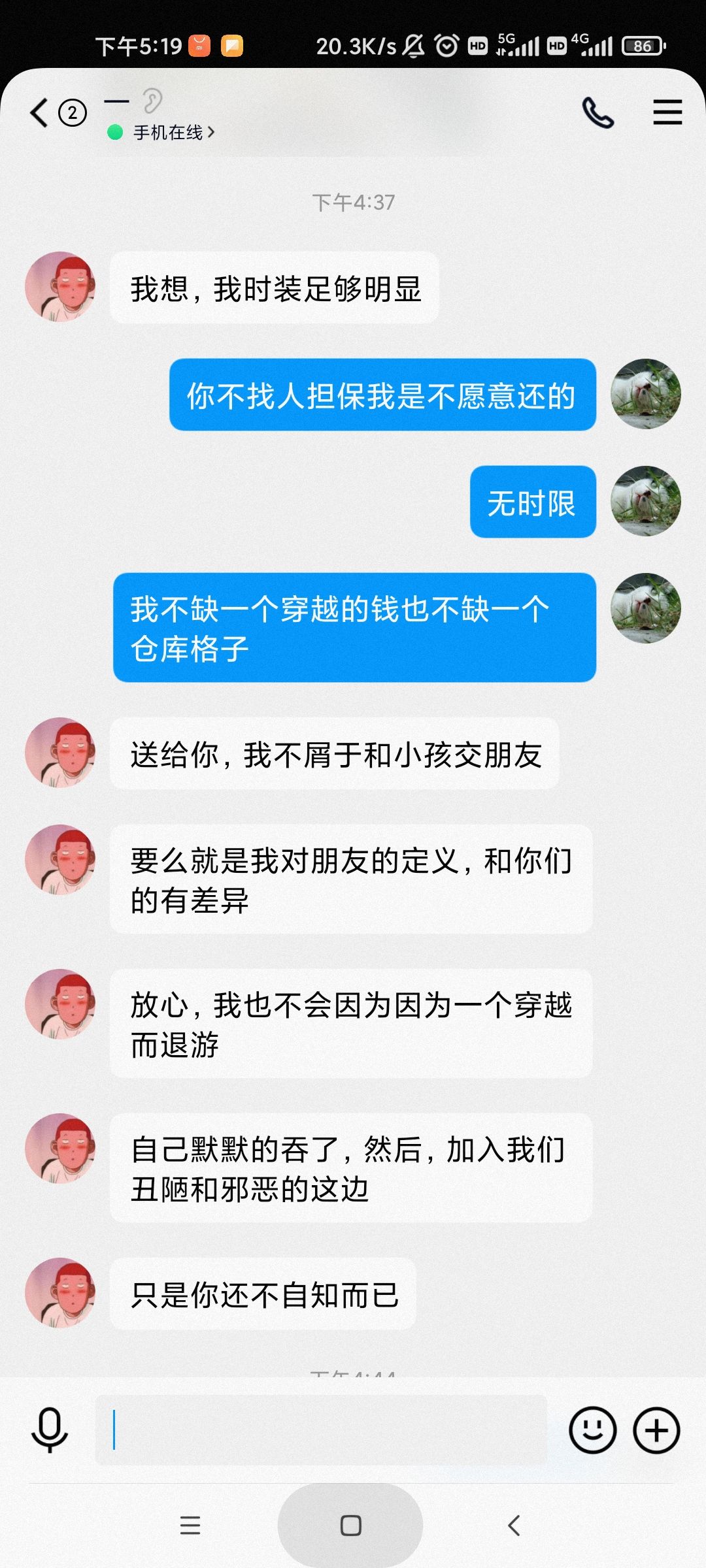 此外此人之前还在我黑名单里,QQ交流中也不说实话油嘴滑舌,所以不想再管了就这么处理了