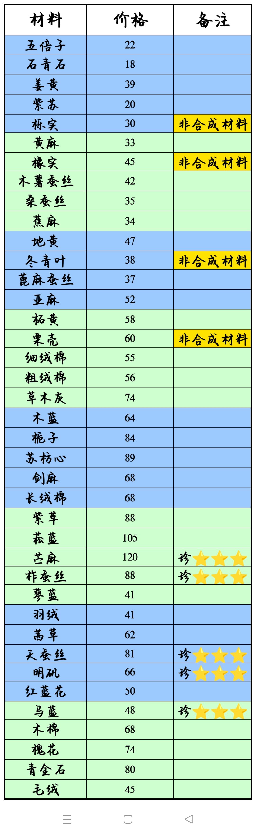 合成材料可以单卖~标黄色的材料是合成贡品时用不到的~单卖比较合适
