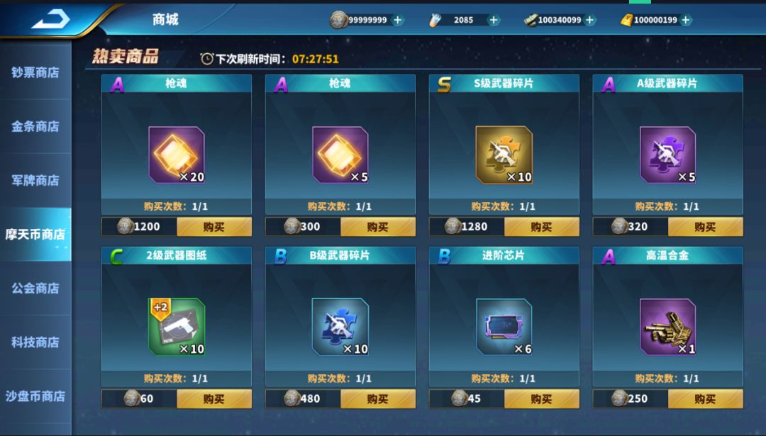通关勇闯摩天楼可获取大量摩天币,摩天币可以在摩天币商店中兑换武器养成系统所需的素材。