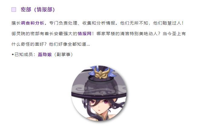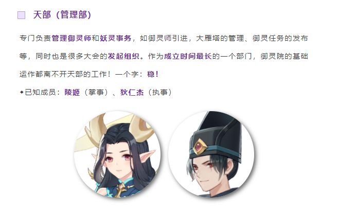 了解完御灵院基础的组织架构之后,每个部门又有什么特点呢?一起来一探究竟吧!