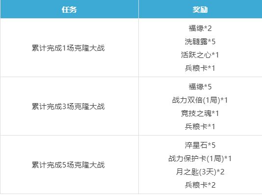 在克隆大战开启时间内,完成相应局数的战斗,还可以获得奖励哦~
