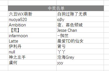 公布一下本期中奖名单: