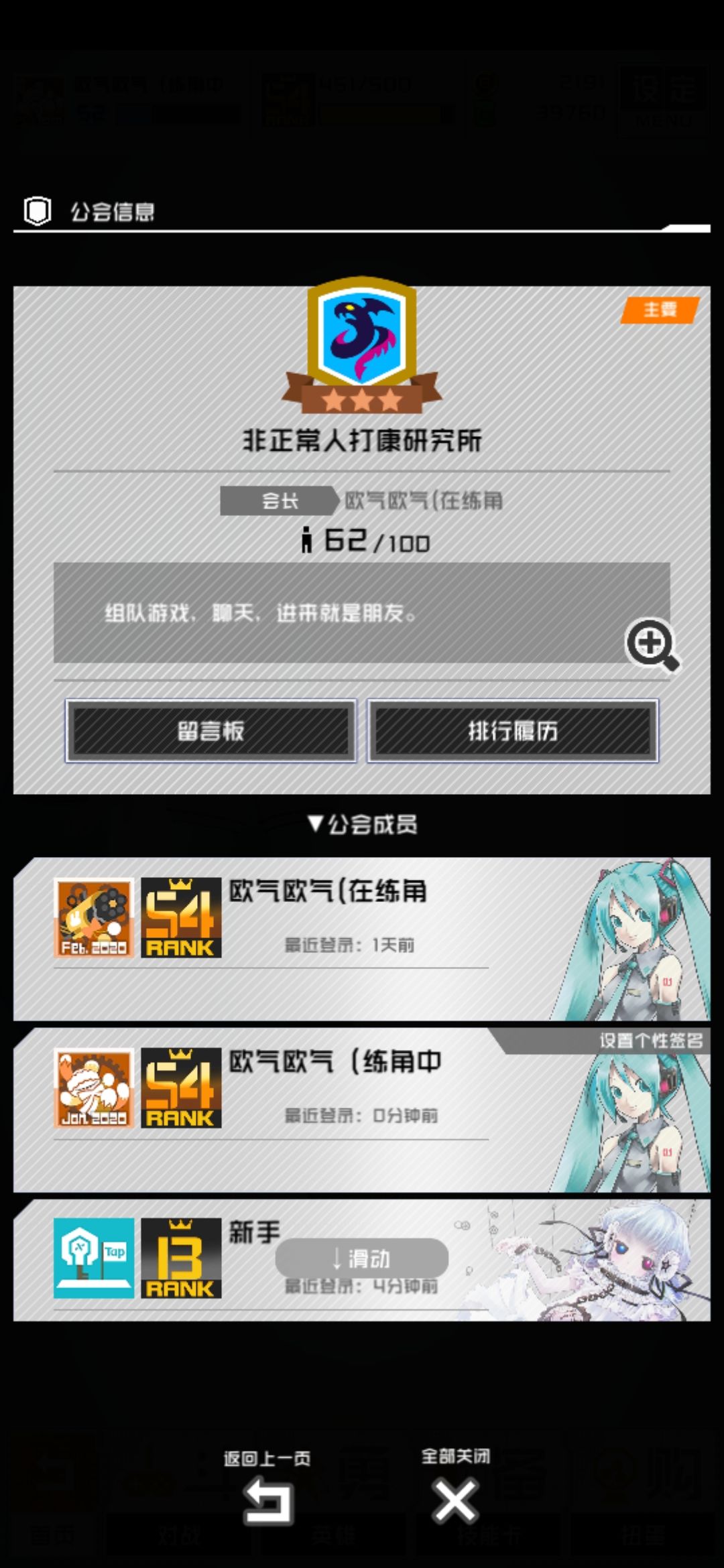 不说太多啦,公会招新,欢迎各位大佬和萌新的加入 公会名非正常人打康研究所qq群930529723