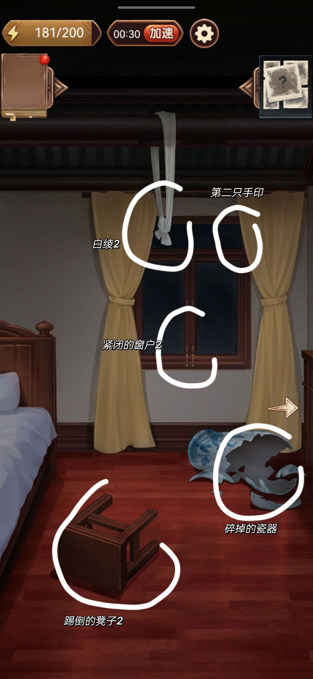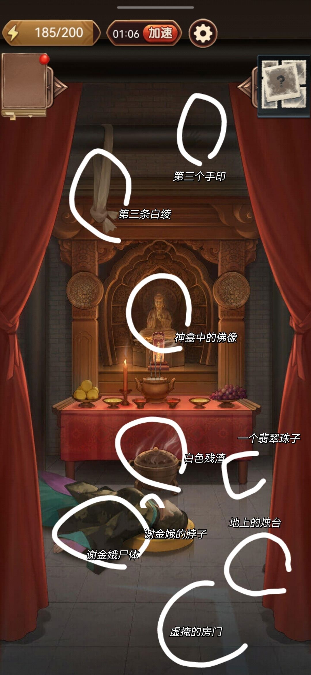 有几处地方线索比较密集而且难以区分,建议把屏幕每个地方都戳过去😂比如三太太的书架和垃圾场那块