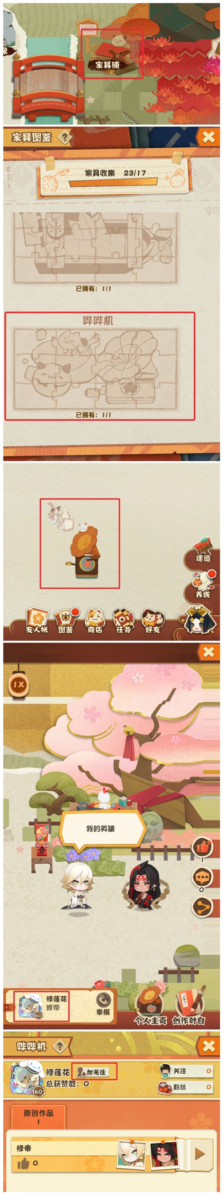 哔哔机需要在[家具铺]中制作(请看P1图),在庭院找到[家具铺]点开,然后滑到最后一个就是哔哔机,制作完成后即可点开主页面“右下角卡米酱→养成→家具→哔哔机”将哔哔机放置在庭院即可使用了。