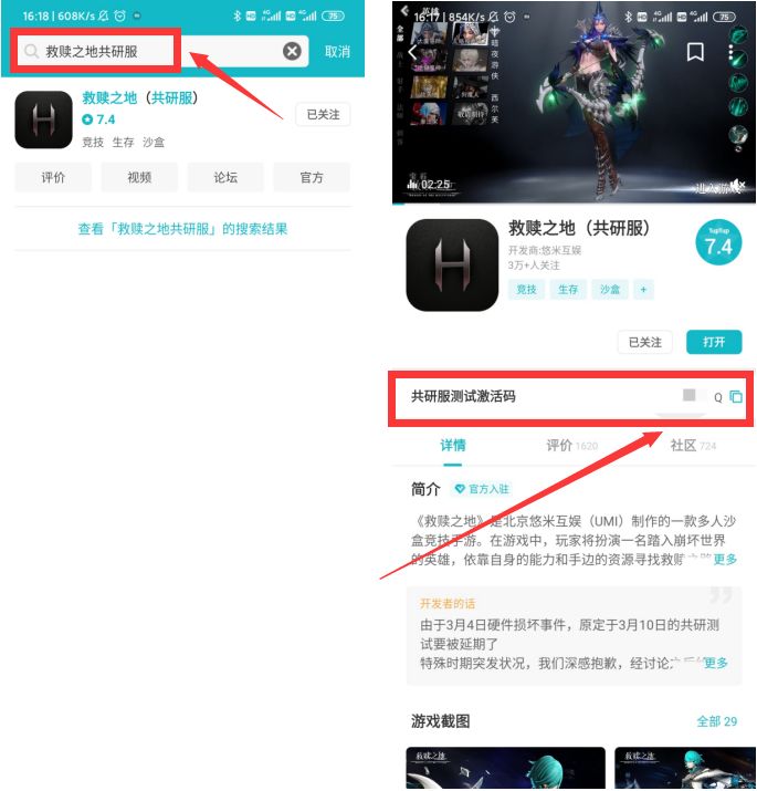 打开TapTap首页,搜索栏搜索“救赎之地共研服”,点击进入共研服首页可查看激活码