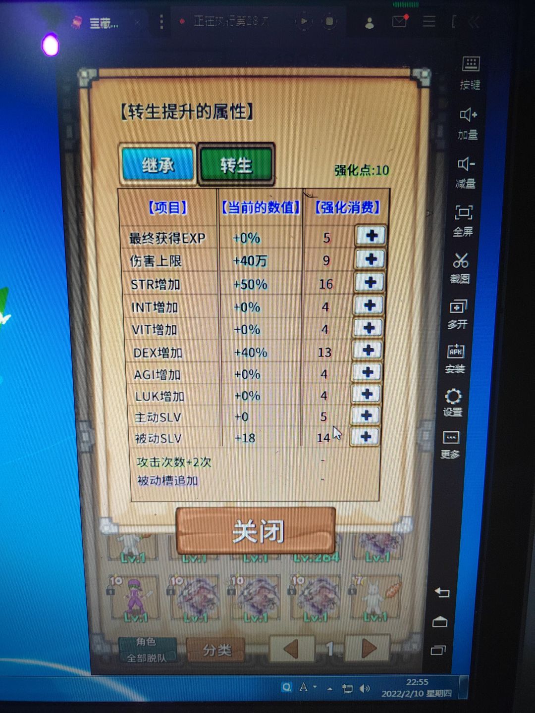 8、电脑挂机主角转生(主要增加HP和蓝,直至主角HP超过2W,极易达到,应该在基础属性满3000前就做到了,反正HP越高打海神越安全)