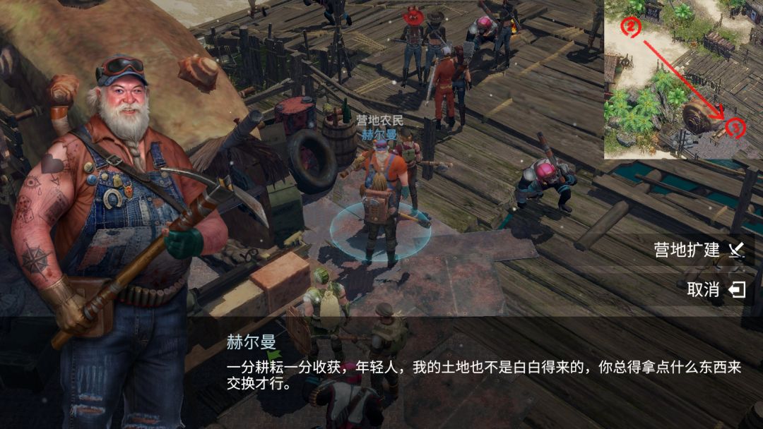 赫尔曼:算你会说话,要不要为你的营地出一份力?贡献出你最近收集的物资帮助营地扩建吧!
