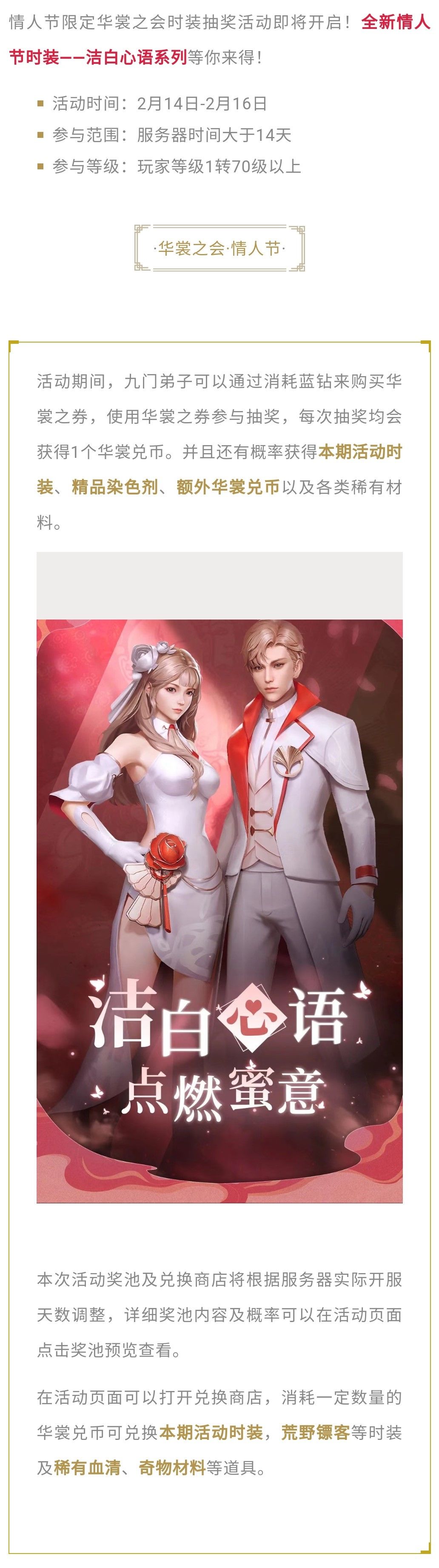 活动|情人节限定时装「洁白心语」即将上线,约你奔赴一场浪漫之旅!