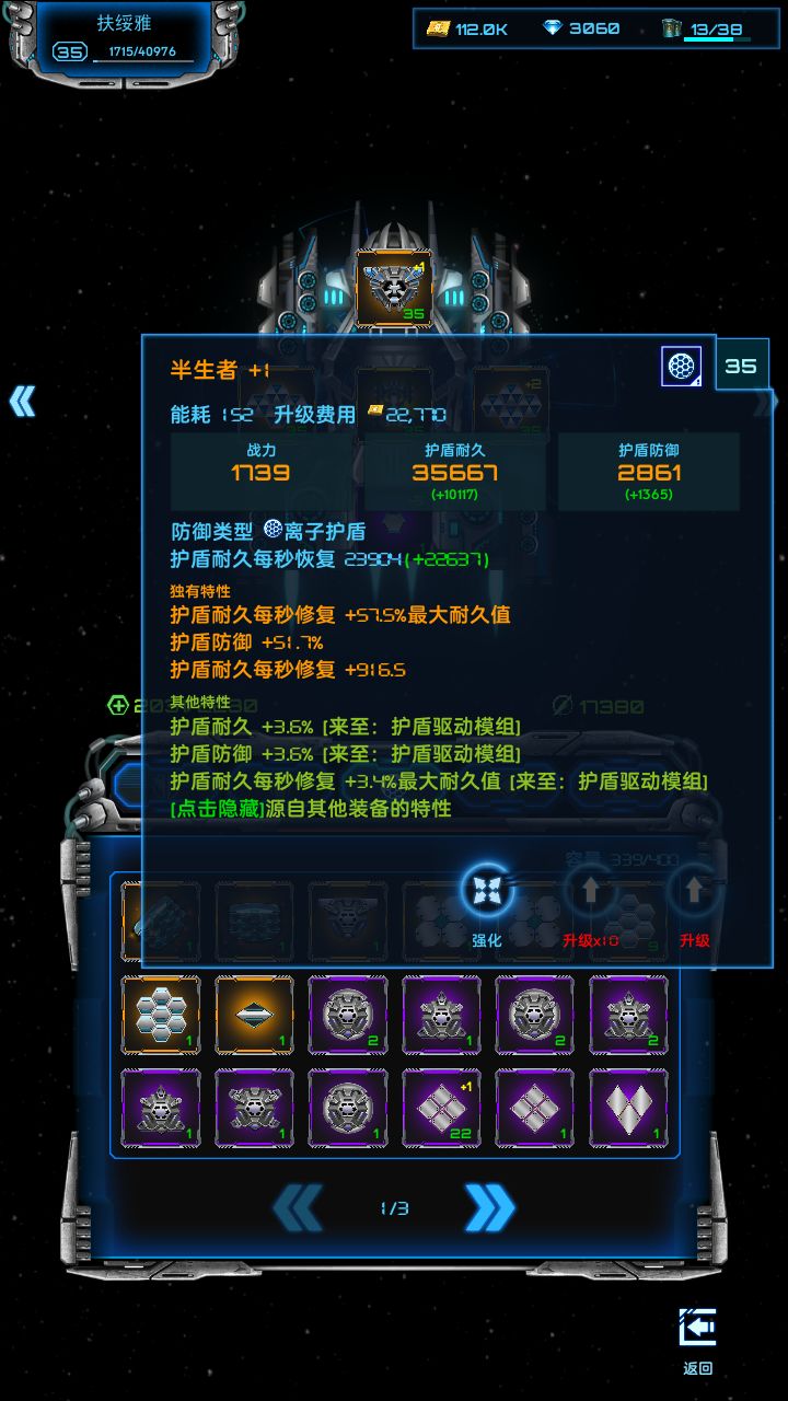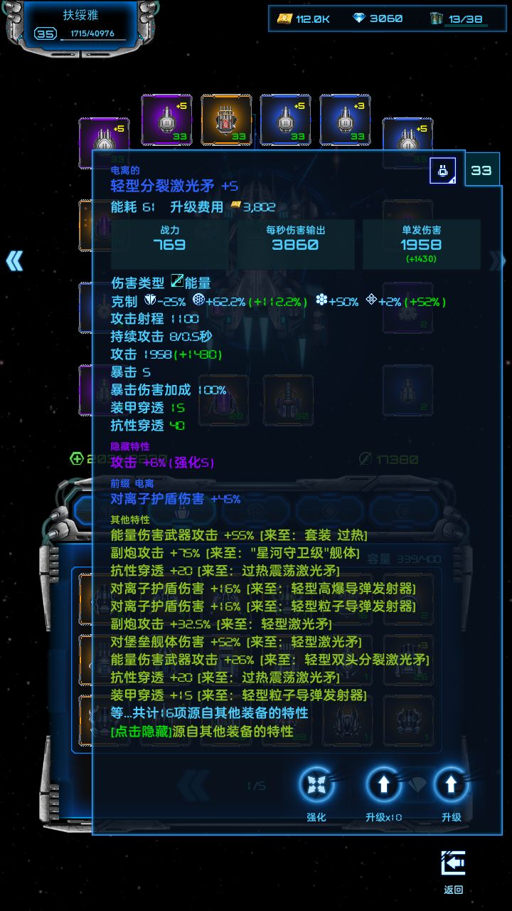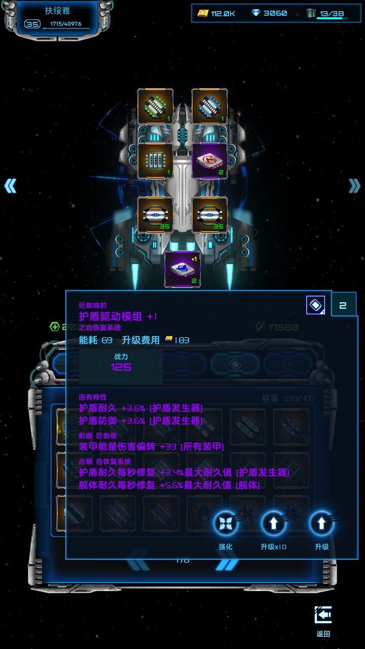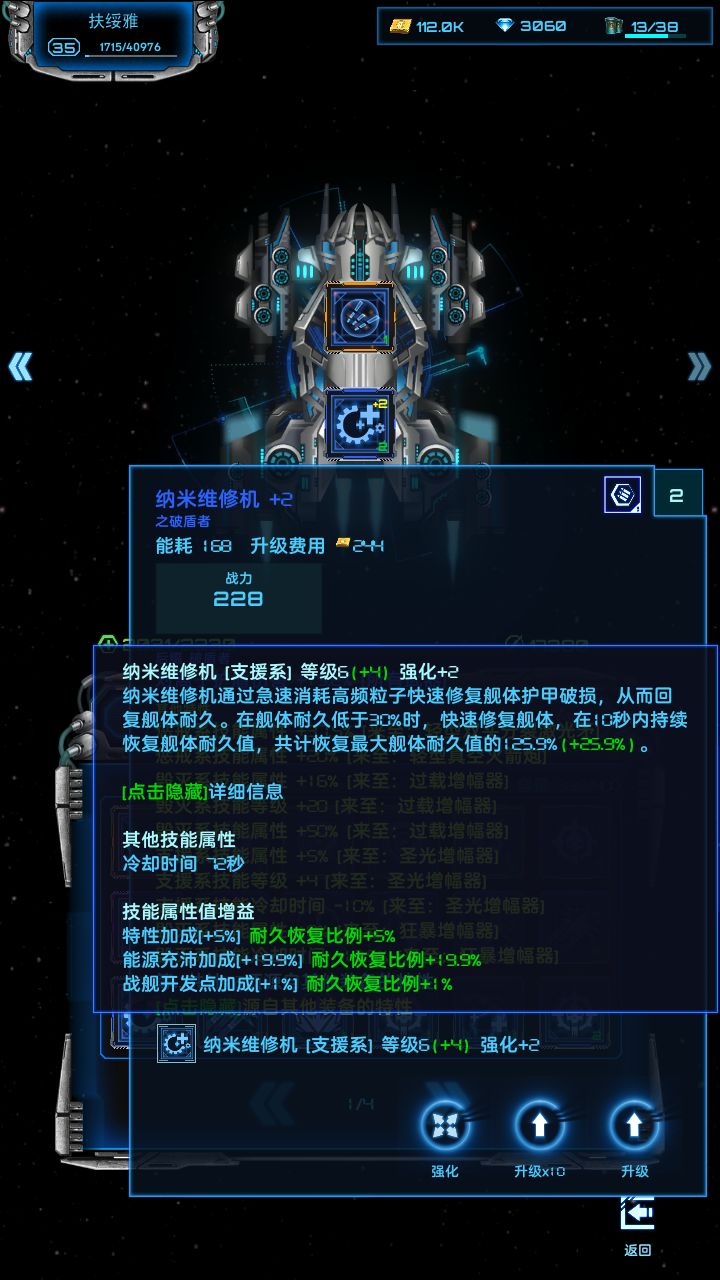 关于超级战舰装配之后,芯片不要升级,升级加电力需求。电力不够,除非你充值有+2反应堆