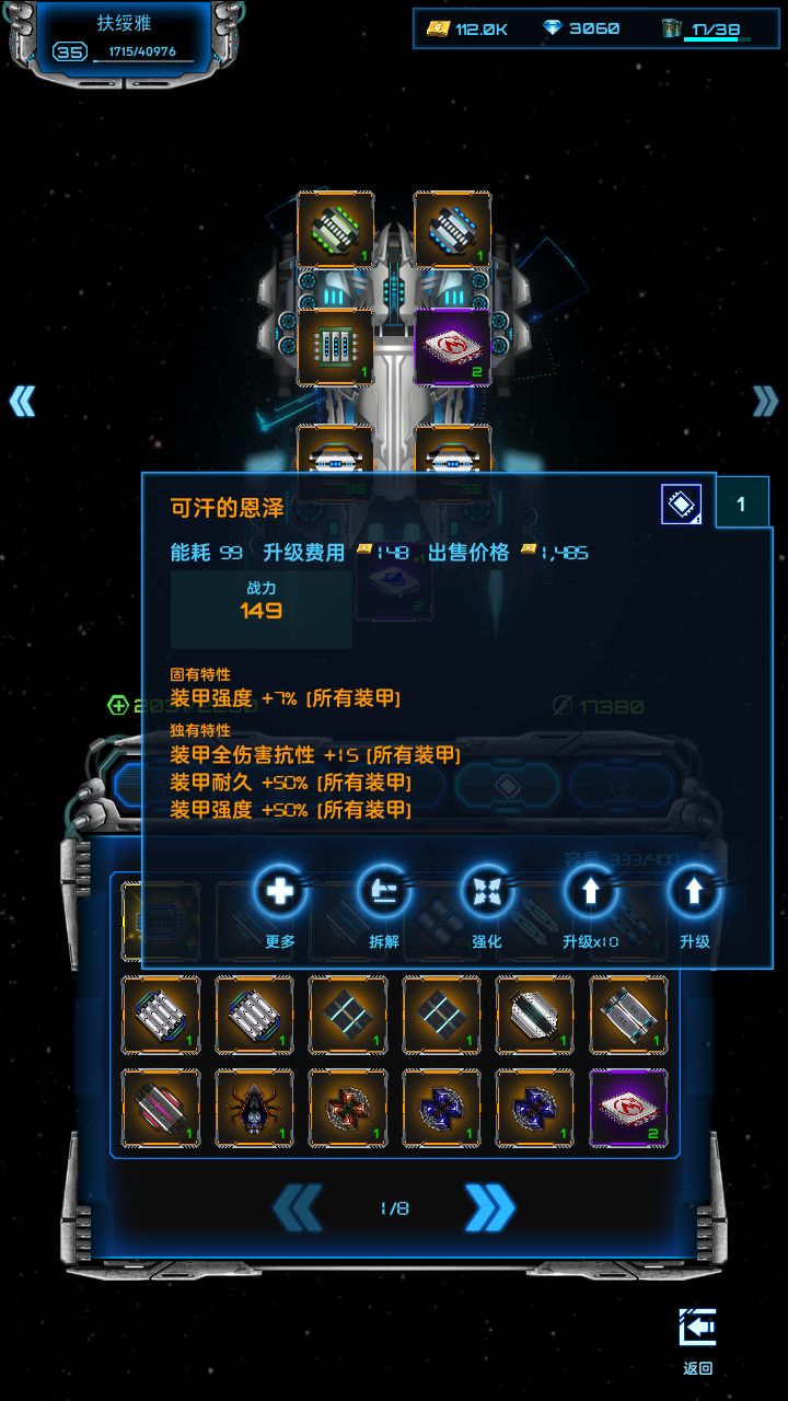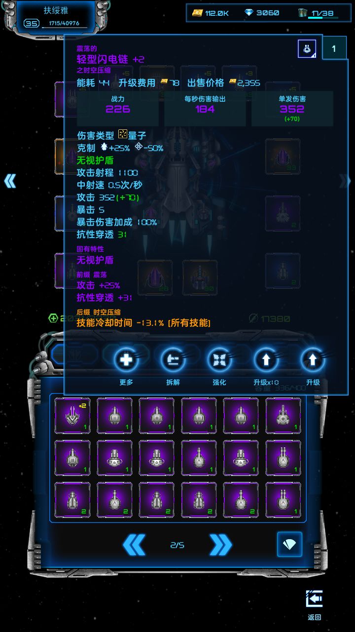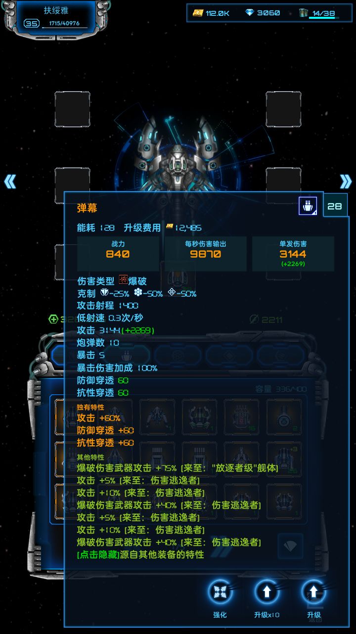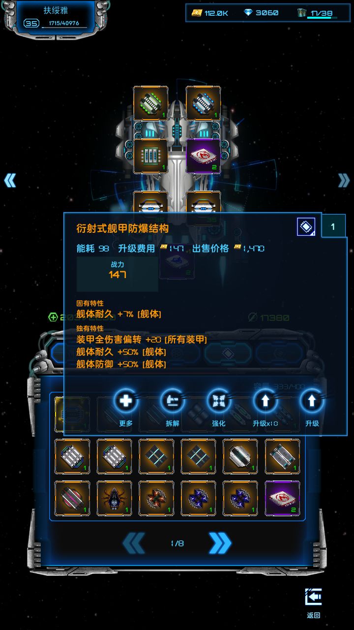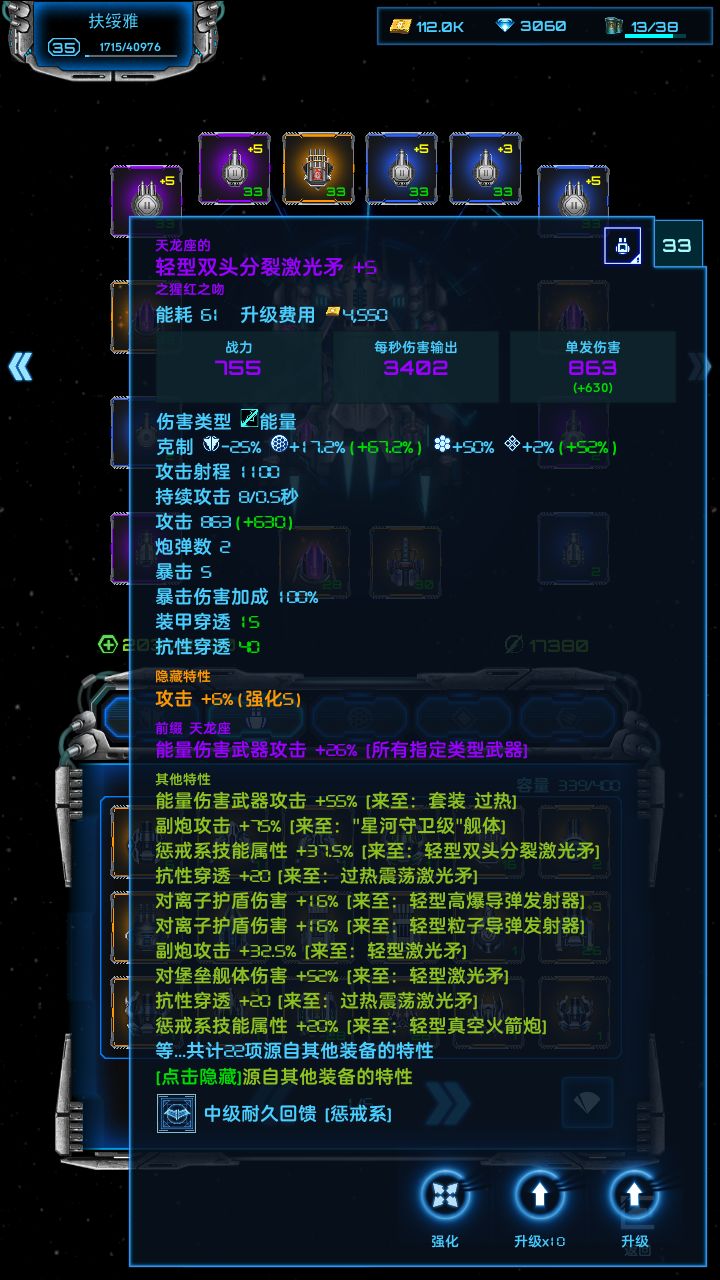 关于超级战舰装配之后,芯片不要升级,升级加电力需求。电力不够,除非你充值有+2反应堆