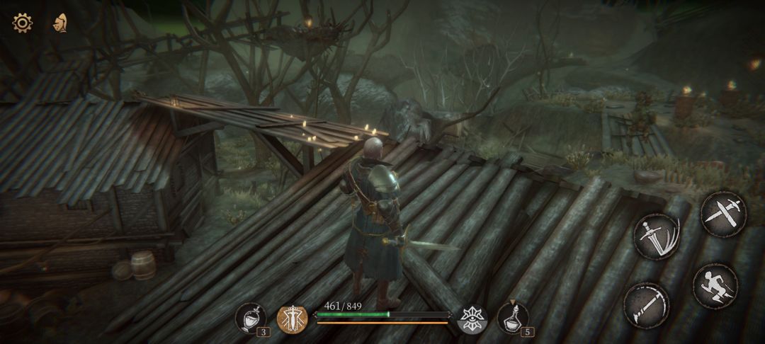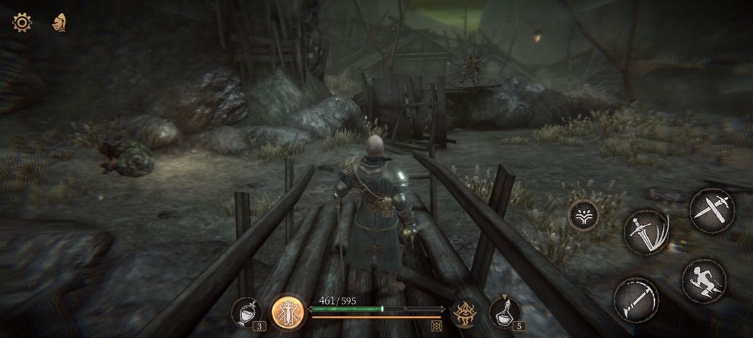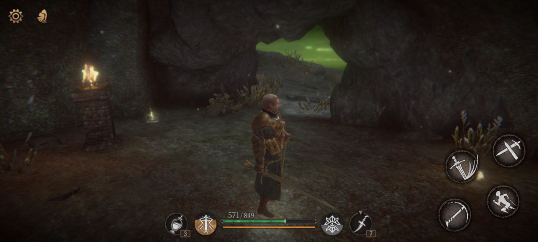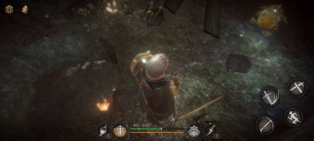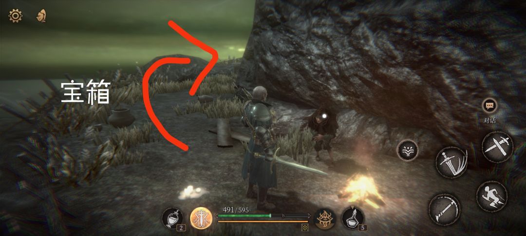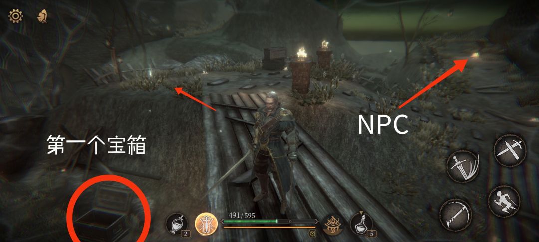 2.击败第二个矿工后出现右边有一个宝箱,获得第一个装备,之后走左边击败蜥蜴人。