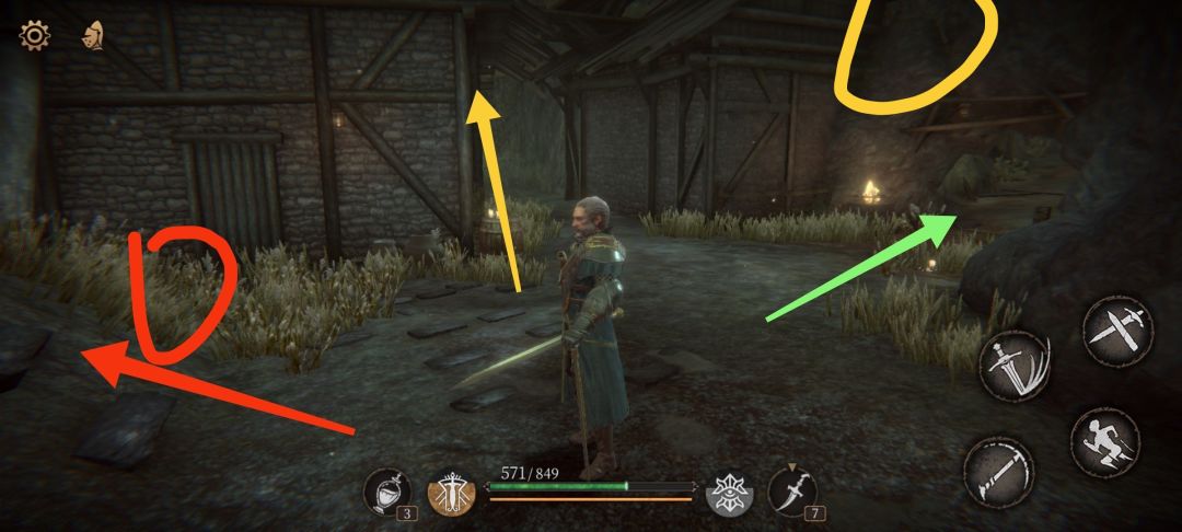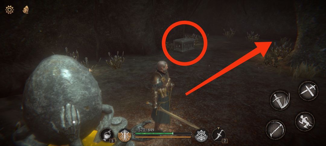21.红圈赫吉(理智),黄圈物品和文献(笔记三),从洞口跳下去打斧头怪(可以下落击倒后捡起泪石直接走)