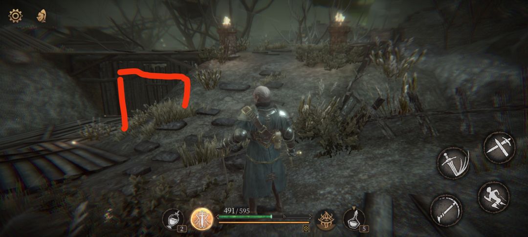 23.旁边有赫吉(骨粒)、可以踢的梯子。然后按红标从屋子搭起来的台子上一直走到一个小道,可以到秘境