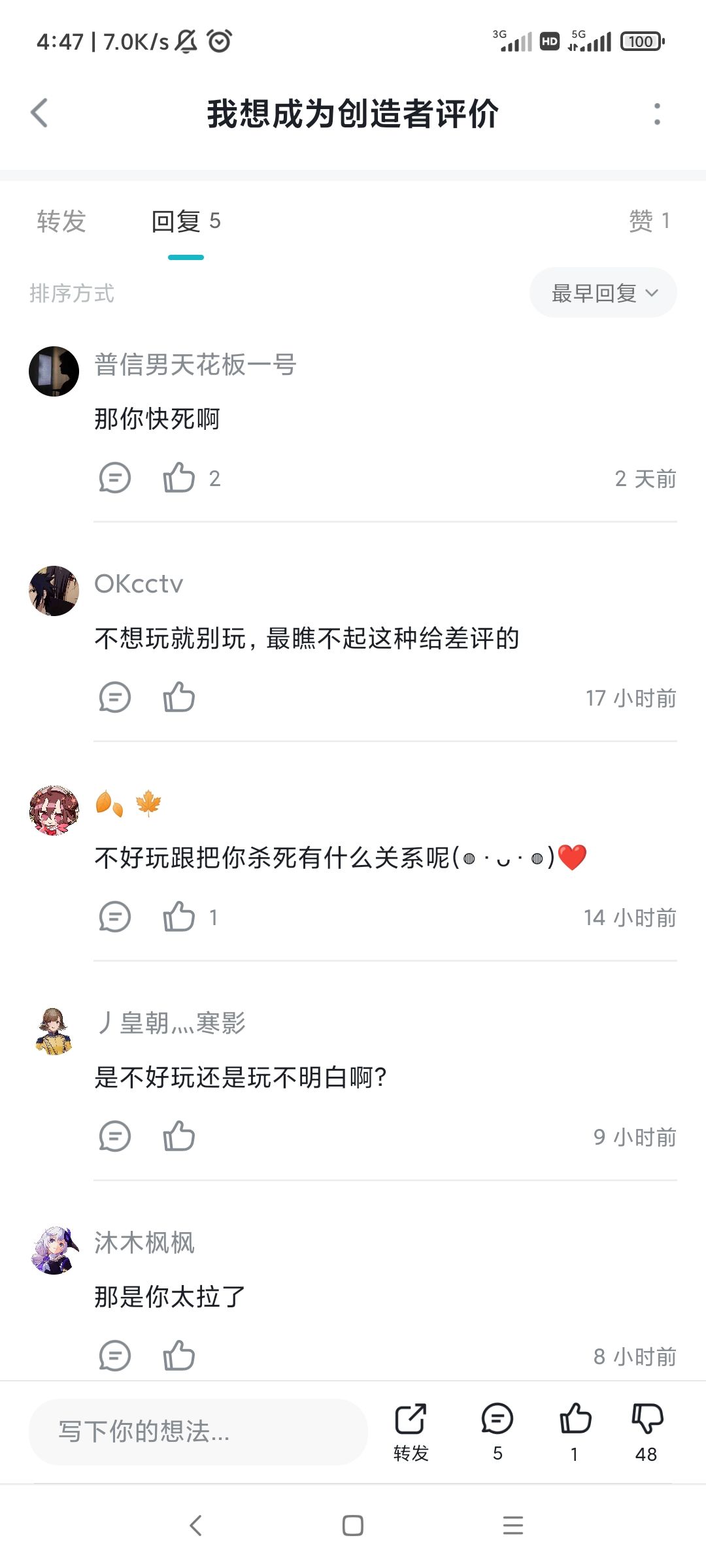 说实话,啥游戏哪怕再好也会有人喜欢有人不喜欢,我体验了,我根据我的感受评价了,也能够给其他一些和我一样没法接受这种游戏强度度的朋友一些建议,让那些玩不来的就别去上头,给他们个提醒,这倒好,直接高强度巡逻贴脸悍跳骂