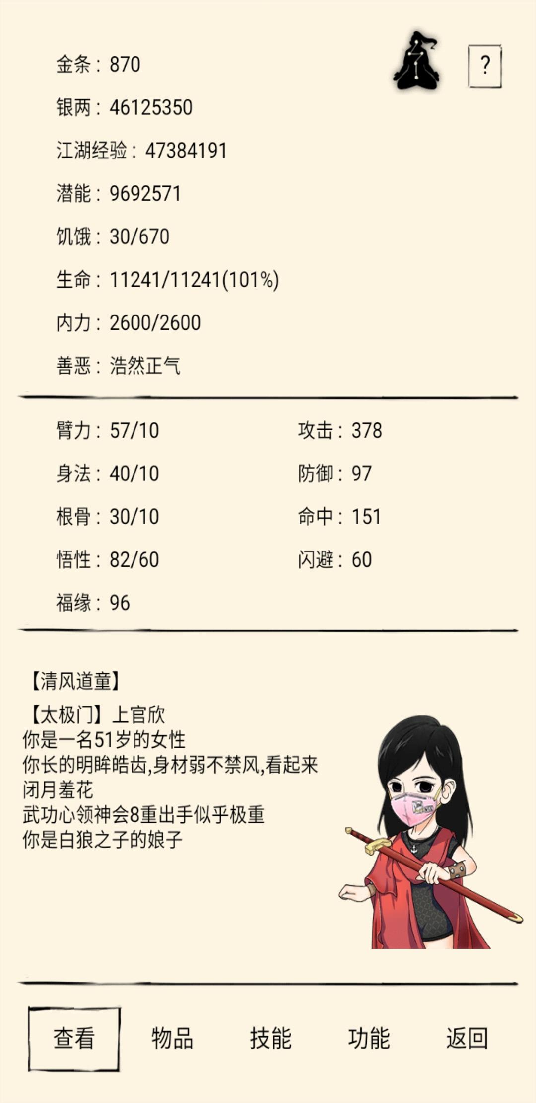 命好,第一层倚天,第二层软猬甲,剩下就不停选力量,刀片,仙酒。